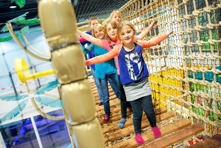 In einem großen Kletterhaus mit drei Etagen spielen, wer will das schon nicht? Im Hof van Eckberge gibt es drinnen Trampoline, einen Kletterturm, eine Rodelbahn, Legoblöcke, eine Freefall-Rutschbahn, eine Familienrutschbahn und eine kleine Seilbahn. Mit dem Softplay und den Netzen alles völlig sicher. Für die ganz kleinen gibt es in der Nähe der beruhigenden Unterwasserwelt eine spezielle Sandburg.  Dort spielen sie sicher und in aller Ruhe auf kleinen Rutschbahnen und Wackelkissen. Draußen gibt es außer dem Mini-Zoo mit  Alpacas, Wallabys, Rentieren, Nandus, Waschbären und Aras ein großes Lufttrampolin, Spielgeräte für unterschiedliche Altersgruppen und einen großen Wasserspielplatz.
