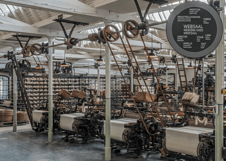 In Bocholt – gleich hinter der Grenze in Deutschland – wurden in der Spinnerei Herding einst mehr als 20.000 Spulen gesponnen. Heute ist es ein beeindruckendes Gebäude mit vier Stockwerken, in dem die Textilindustrie der Vergangenheit wieder zum Leben erwacht.